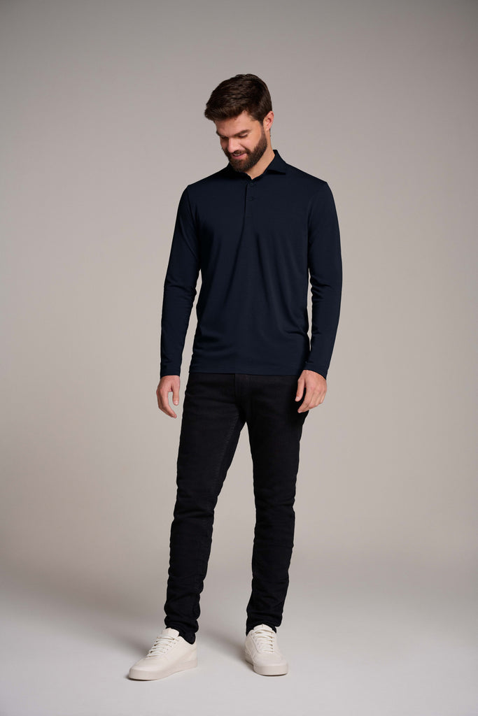 Nuestro Long Sleeve Polo Shirt combina elegancia y comodidad excepcional. Perfecto para la oficina o una cena, es el toque sofisticado que tu closet necesita.